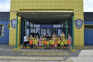 Для ребят была организована обзорная экскурсия по спортивному комплексу. Дети побывали на футбольном поле, ознакомились с разметкой, в крытом манеже воспитанники имели возможность позаниматься с мячами, забить в ворота гол.