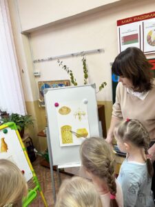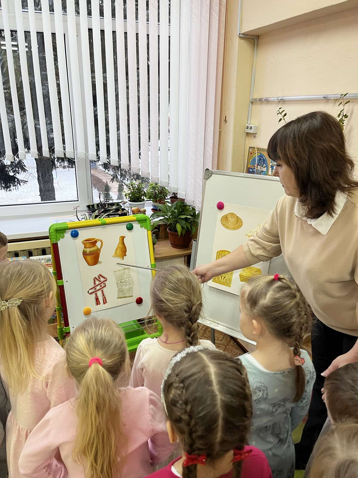 Малыши обсудили какими видами творчества увлекались ранее в нашей стране, как выглядели изделия ручного ткачества.