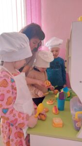 Сегодня воспитанники средней группы №1 познакомились с профессией повара. Дети с интересом слушали и рассказывали об особенностях этой профессии, о ее важности, о том, что может приготовить повар. А также сами попробовали себя в роли маленьких поварят.