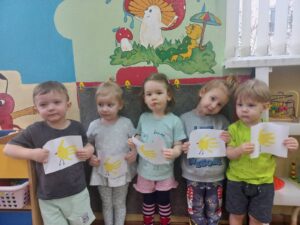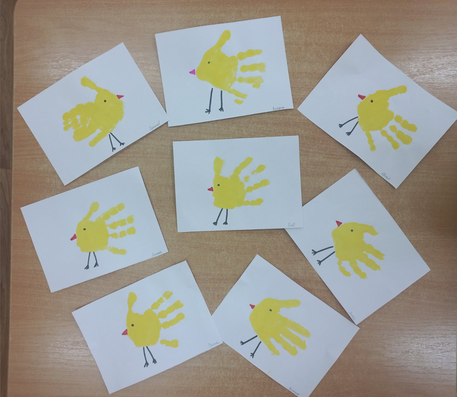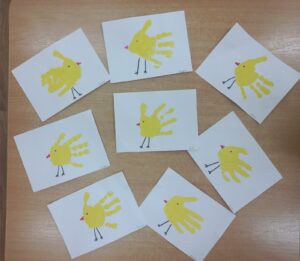 Сегодня самые маленькие воспитанники нашего детского сада познакомились с нетрадиционной техникой рисования с помощью отпечатки ладошки. Это способствует развитию образного представления, воображения, мелкой моторики рук. Дети получили огромное удовольствие в своей небольшой творческой деятельности. вот такие «Цыплята » у нас получились