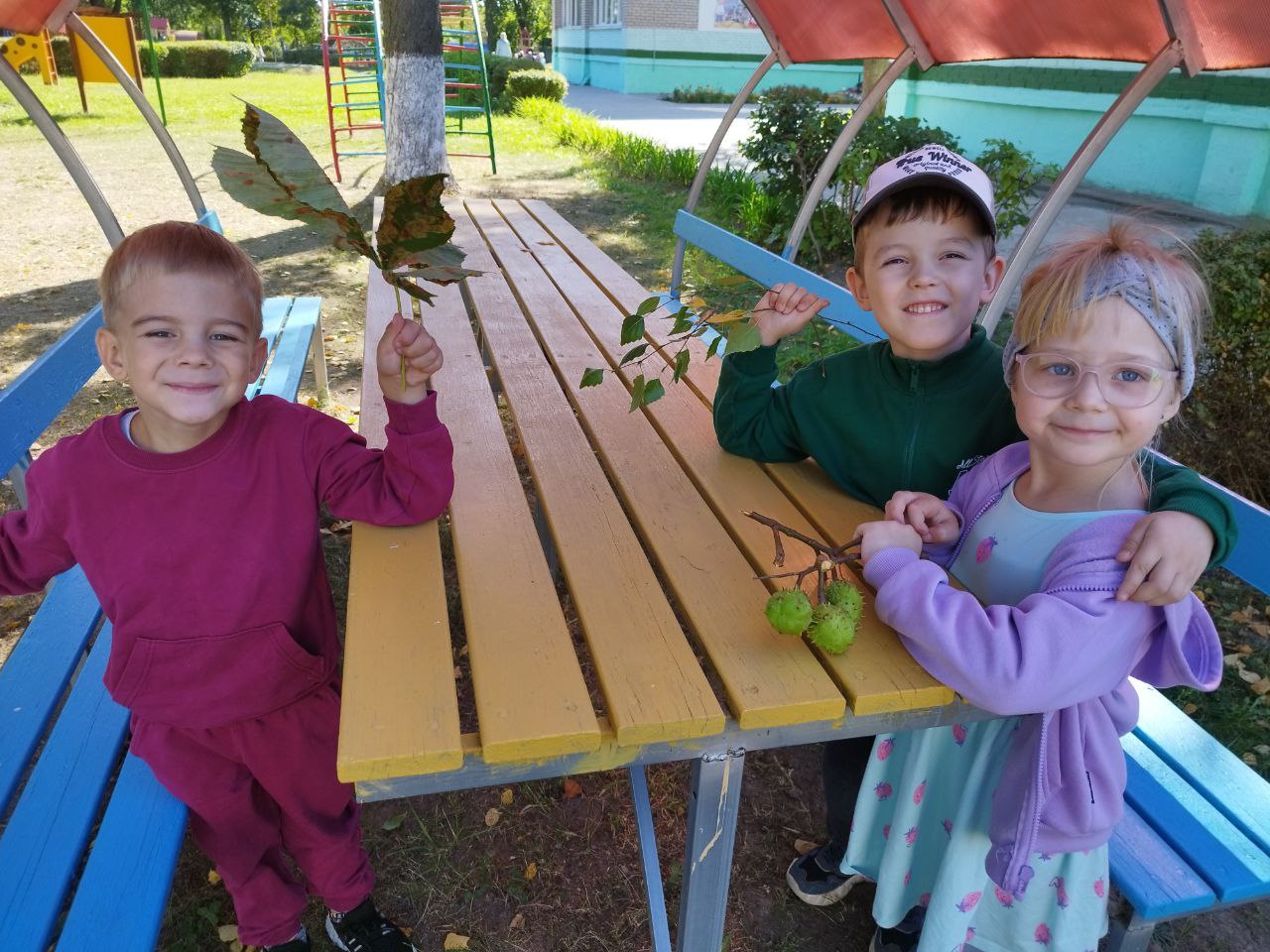 Ребята средней группы №1 на прогулке совершили увлекательную экскурсию по территории детского сада, рассматривали деревья, сравнивали их листья и семена. Наблюдая за разнообразием и красотой деревьев, дети увидели первые осенние изменения в природе, сделали вывод о том, как важно беречь и охранять окружающую нас природу