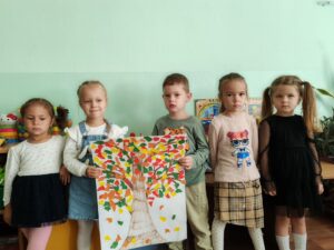 Вот и прошло тёплое лето, наступила красивая осень со своими яркими красками. Осень раскрасила всё вокруг в свои любимые цвета. Теперь в лесах, парках и садах стоят красные, оранжевые, жёлтые деревья. Вот и мы с ребятами 2 младшей группы решили сделать красивое осеннее дерево.
