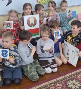 Выхаванцы замацавалі веды аб родным краі, прыродных сімвалах Беларусі (бусел, зубр, хвоя, васілёк, канюшына, лён), дзяржаўным сцягу, развіваем уменні распавядаць на роднай мове, слухаць і выспаняць гімн. Сфарміравалі ўменне ўжываць на бел.мове абагульняючыя словы (цацкі,посуд,адзенне, абутак,жывелы,садавіна і інш.) Вельмі важна зараз выхаваць пачуццё патрыятызму і любові да Радзімы, паважлівае стаўленне да культуры сваёй краіны, народа.