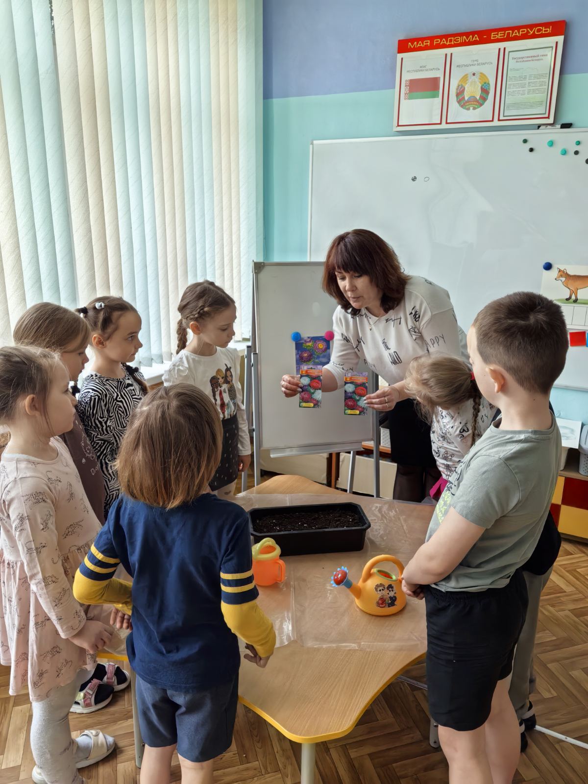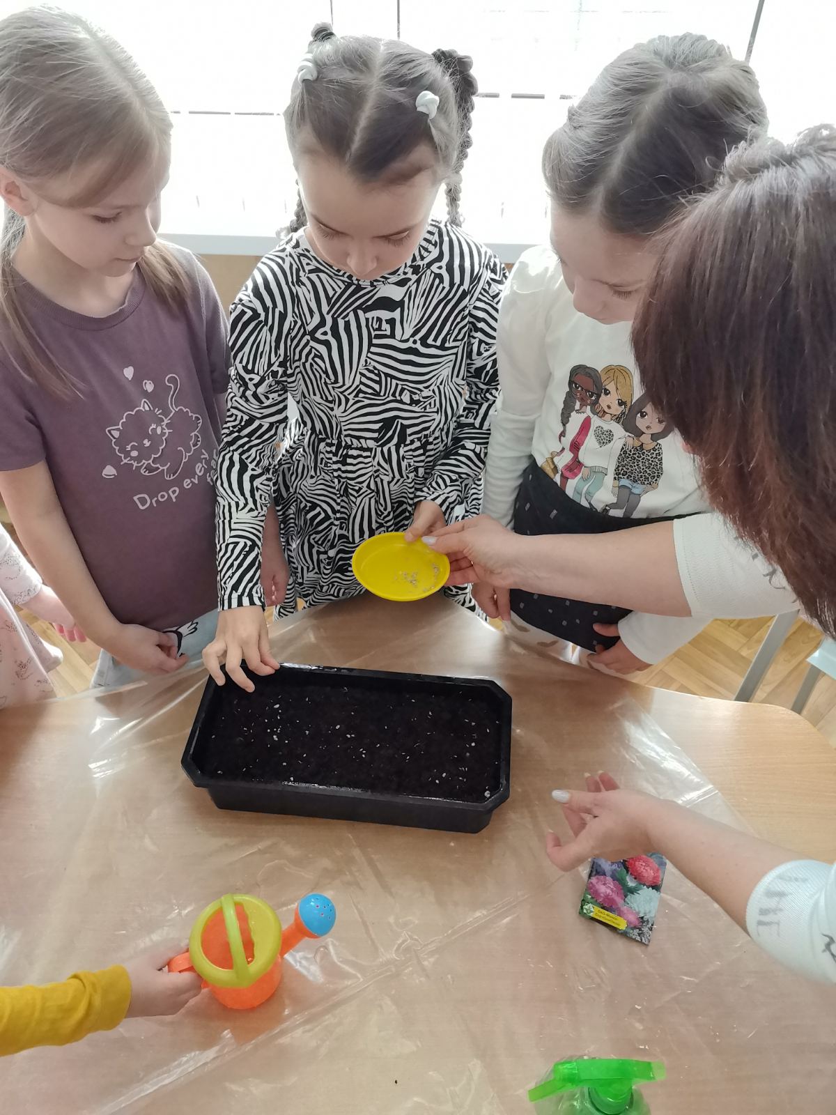 Уже во всю цветут первые весенние цветы, радуют нас своей красотой. Сегодня мы с ребятами старшей группы 2 позаботились о том, чтобы клумбы нашего детского сада и дальше радовали нас, посадили семена астры . Теперь ребята будут пока ухаживать и наблюдать за нашим цветником на подоконнике, ну, а потом, на клумбе детского сада.